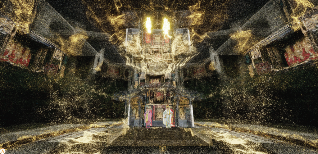 Opera embodies deep cultural heritage and traditional lifestyles and deserves engaging promotion and preservation. However, traditional Chinese opera performances and experiences often fall short of meeting the expectations of modern audiences. This paper focuses on using the latest technologies to set up a bridge that not only preserves and promotes traditional cultural heritage but also aligns with modern viewing habits. Through volumetric video capture and 3D reconstruction, we captured high-fidelity performances of opera artists and recreated an ancient stage with interactive particle effects to build an experience in virtual reality (VR). Users can engage with the environment through their singing and gesture movement where the amplitude of Cantonese opera vocals and gestures will influence interactive point cloud particles, creating a dynamic atmosphere. This experience aims to trigger the curiosity of younger audiences in the appreciation of traditional performing arts.